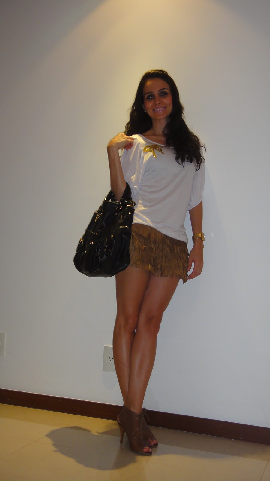 Esse foi o “look do dia”. Frise-se, porém, que o detalhe da bolsa foi só para complementar o look para a foto e para mostrar a desnecessidade da combinação de acessórios. Afinal, em casa eu JAMAIS colocaria uma bolsa a tiracolo néeeee.. rs
