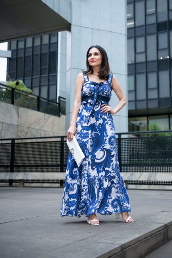Quem me conhece um pouquinho que seja, ou, ainda mais, quem me acompanha aqui já há algum tempo vai poder dizer: eu amei a estampa desse vestido @padronagem sim ou MUITO com certeza? Essa é a estampa #cashmere, que também remete ao provençal ou ao azulejo português. Simplesmente APAIXONADA!!! 💙 Foto: @g.barross